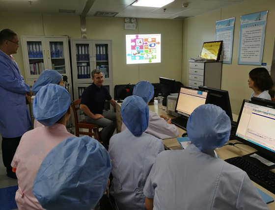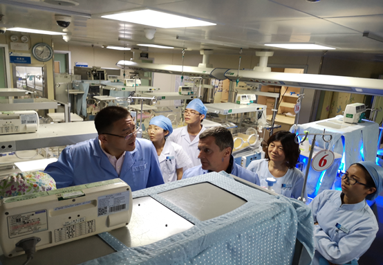 会后,姜主任邀请Mr.Franz von Wirth参观了我院新生儿病房,双方就床旁血气分析仪的应用及数据的读取与分析进行了临床经验分享。临走之时,Franz von Wirth教授说:“湖北省中山医院新生儿科病房非常温馨,与大家的交流探讨让我度过了一段美好的时光!”