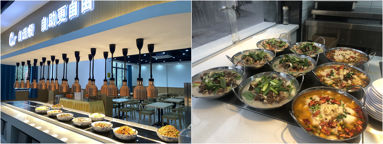 大厅环境清新明亮,干净宽敞。崭新的桌椅、丰富的菜品,还有食堂工作人员热情周到的服务,让人倍感舒适。