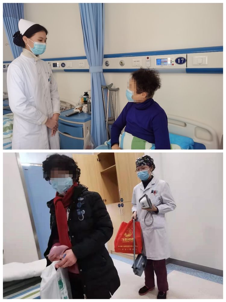热情的医护人员帮助新入院患者拿行李和及时进行入院宣教