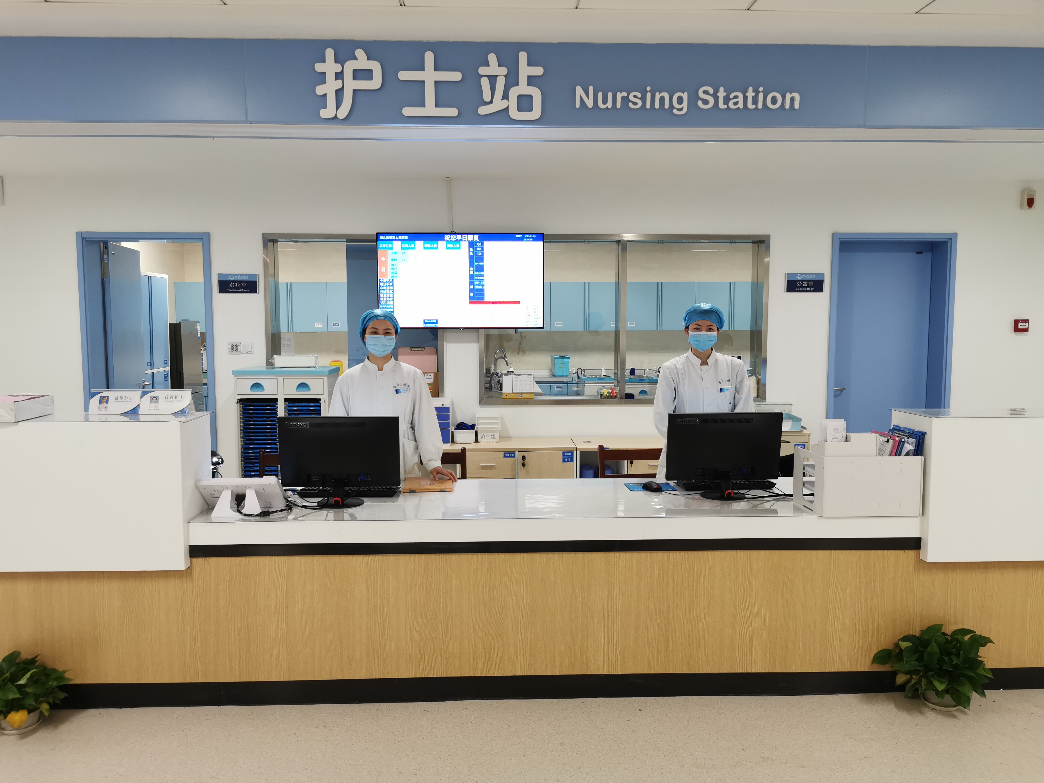 病区配备了更人性化的呼叫设备,床头卡信息、管床医生及护士信息均采用电子屏实时同步显示,患者可清晰了解自己管房医护人员的信息,医务人员也能更清晰掌握患者的治疗观察要点,提高医疗护理质量。
