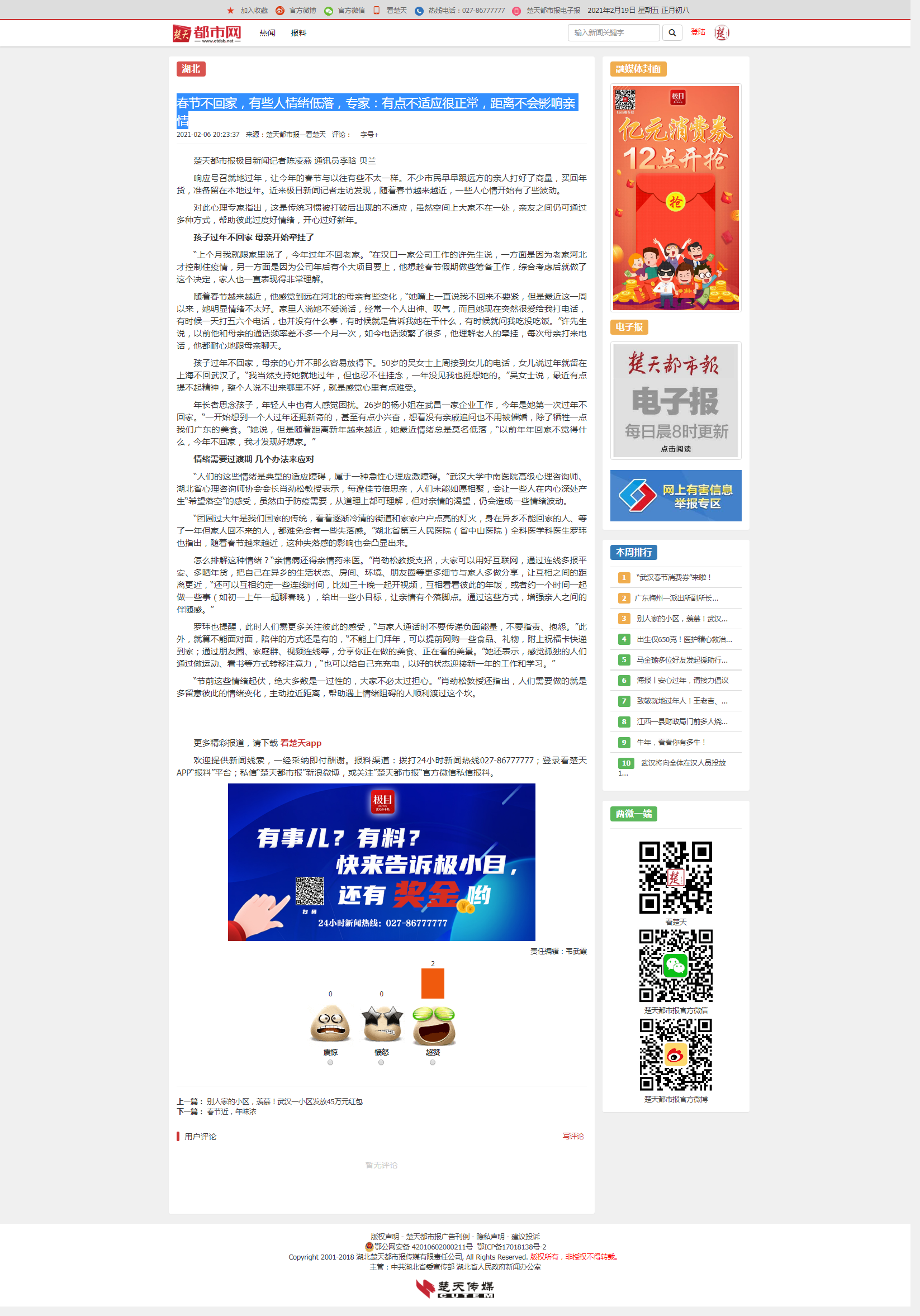 【楚天都市网】春节不回家,有些人情绪低落,专家:有点不适应很正常,距离不会影响亲情 发布时间:2021-02-19 来源:转载自楚天都市报 上一篇:【长江云】“这份新年礼物,请您悄悄退掉!” 下一篇:【澎湃新闻】病患痔疮复发痛苦不堪,湖北7旬老医生弯腰为其掏粪便半小时