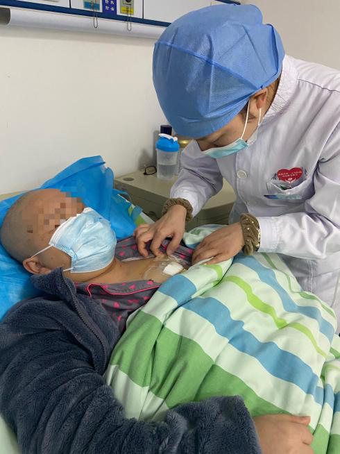 凭借自己过硬的穿刺技术和认真负责的工作态度,在担任责护组长期间,张莉几乎承包了输液港所有病人的维护工作,被大家亲切的称为“港姐”。