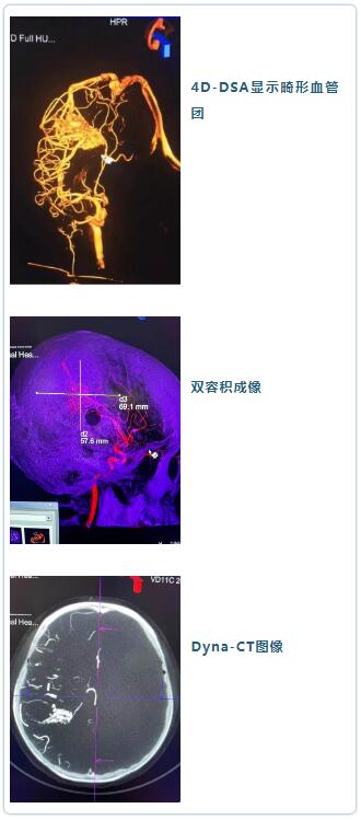 省第三人民医院神经外科团队在此次造影中利用“4D-DSA”功能、“双容积重建功能”和“Dyna-CT功能”等,对病变进行了深入仔细的分析,并做出多种手术计划和方案。后续还将采用此次造影获得数据,通过特殊软件与MRI数据融合,更精确判断畸形血管团、脑组织、功能区的解剖关系。