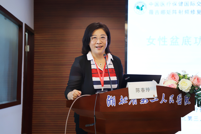 培训班第一讲由中国医疗保健国际交流促进会妇产科分会主任委员、主任医师陈春玲教授对盆底肌筋膜痛的诊治进行分享。她强调,妇产科医生要多关注术后问题,积极参与学习盆底疾病诊断康复治疗,真正为更多的女性造福。