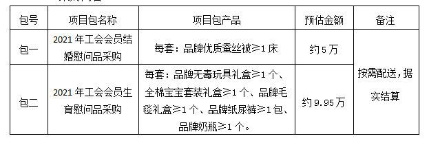 二、项目名称:2021年工会会员结婚、生育慰问品采购项目