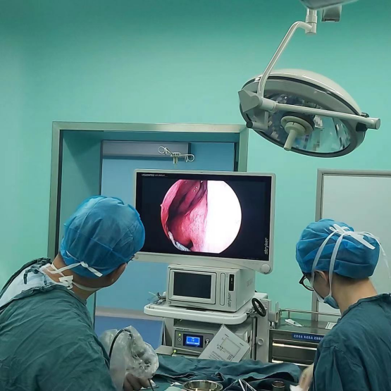 最终经过多方综合考虑,耳鼻喉科主任张志敏团队为患者行“经鼻内镜泪前隐窝径路下上颌窦肿物切除+鼻内镜下多个鼻窦开放+下鼻甲成形术+鼻中隔成形术”。术中,张主任采取双进路联合术式,为鼻内镜下多个鼻窦开窗的基础上联合鼻泪前隐窝进路,术中用电钻磨除生发中心的骨质,电凝根基部,同时矫正鼻中隔,解除右侧鼻腔挤压情况,为右侧鼻窦开窗方留出足够空间,手术历时三个多小时,患者鼻内肿物被顺利清除。术后患者恢复良好,鼻阻、流涕等症状明显缓解。