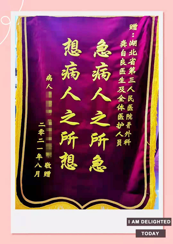 这天一大早,湖北省第三人民医院(湖北省中山医院)的朋友圈被一篇名为《感恩湖北省第三人民医院龚自良医生》的文章刷屏了。感谢信是73岁陈婆婆的女儿所写,内容情深意切,表达了陈婆婆及家属对脊柱创伤外科医生龚自良和科室护理团队的感激之情。