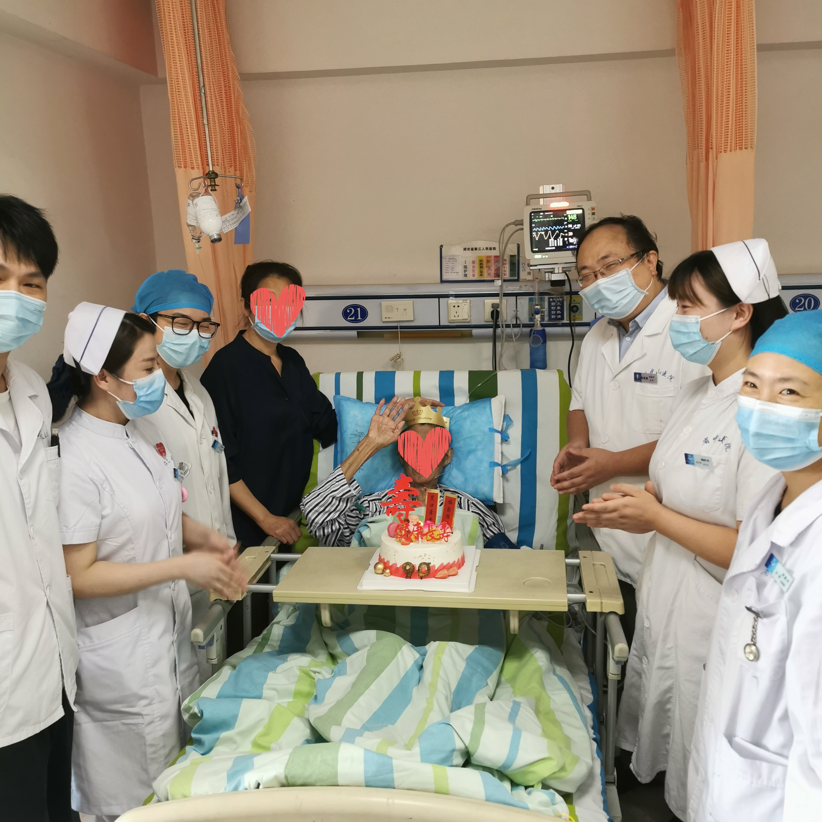 肿瘤科团队得知这个消息,再想到马上要过中秋佳节,大家决定在这个团圆之日,给竺爷爷举办一场特殊的寿诞,为老人送上最真诚的生日祝福。