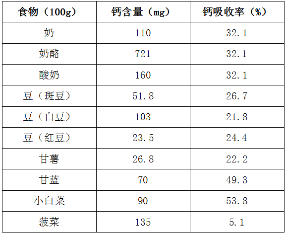 从上面两个表中可以看出,有些食物不仅含钙量高,而且吸收利用率也高,例如乳制品,相较于人乳、羊乳,牛乳中含钙量最高;而有些食物含钙量较高,但是吸收率却偏低,例如菠菜,由于草酸含量较高,还会影响同食食物的钙吸收。所以在日常饮食中选择钙源好的食物,需要综合考虑钙的含量和吸收利用率两个指标。