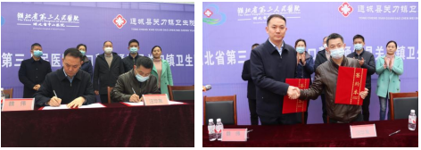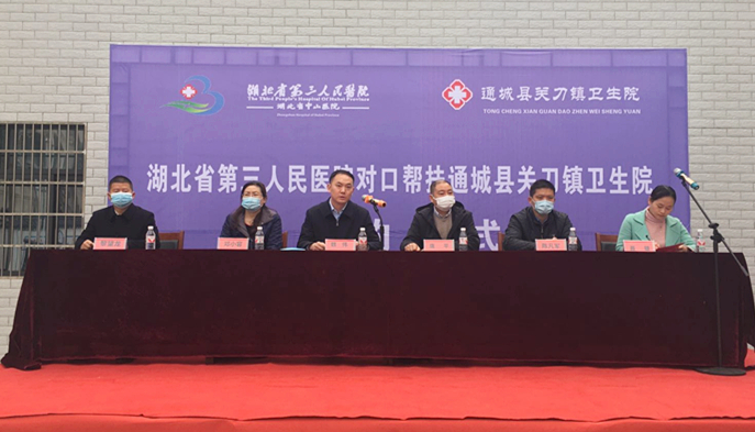 为贯彻落实省委、省政府关于乡村振兴的有关文件,推动通城县卫生健康事业高质量发展,按照省卫健委的统一部署,12月11日,湖北省第三人民医院(湖北省中山医院)与通城县关刀镇卫生院举行医联体签约揭牌仪式,开展对口帮扶。通城县副县长唐平、省卫健委办公室副主任陈凡军、省第三人民医院院长魏伟等出席了此次活动。仪式由通城县卫健局局长聂雄主持。