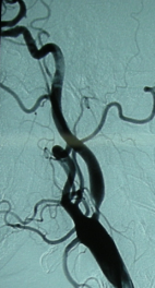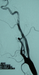 血管狭窄时脑卒中的独立危险因素,近年来开展的血管内支架植入术对治疗颅内外动脉狭窄,预防卒中复发具有重要意义。我科术前充分进行风险-效益评估,严格把握手术适应证。先通过脑血管造影明确是否存在血管狭窄、动脉瘤等解剖异常,动态、全面地观察脑血管血流情况、变异情况、侧支代偿情况、Willis环情况和计算狭窄率,根据造影结果了解血管内支架植入术的路径、选择合适类型的支架和规格,然后择期手术。动脉支架放置术与颈动脉内膜剥脱术比较具有创伤小,手术并发症低等特点,可在局部麻醉下进行,手术病人所受的痛苦及住院天数均较少,心脏血管并发症极低,减少中风之效果甚佳,支架置入术的有效率达95%,合并症小于5%。由于其微创、操作安全性高以及并发症较少,目前我科技术日渐成熟,使越来越多的患者受益。