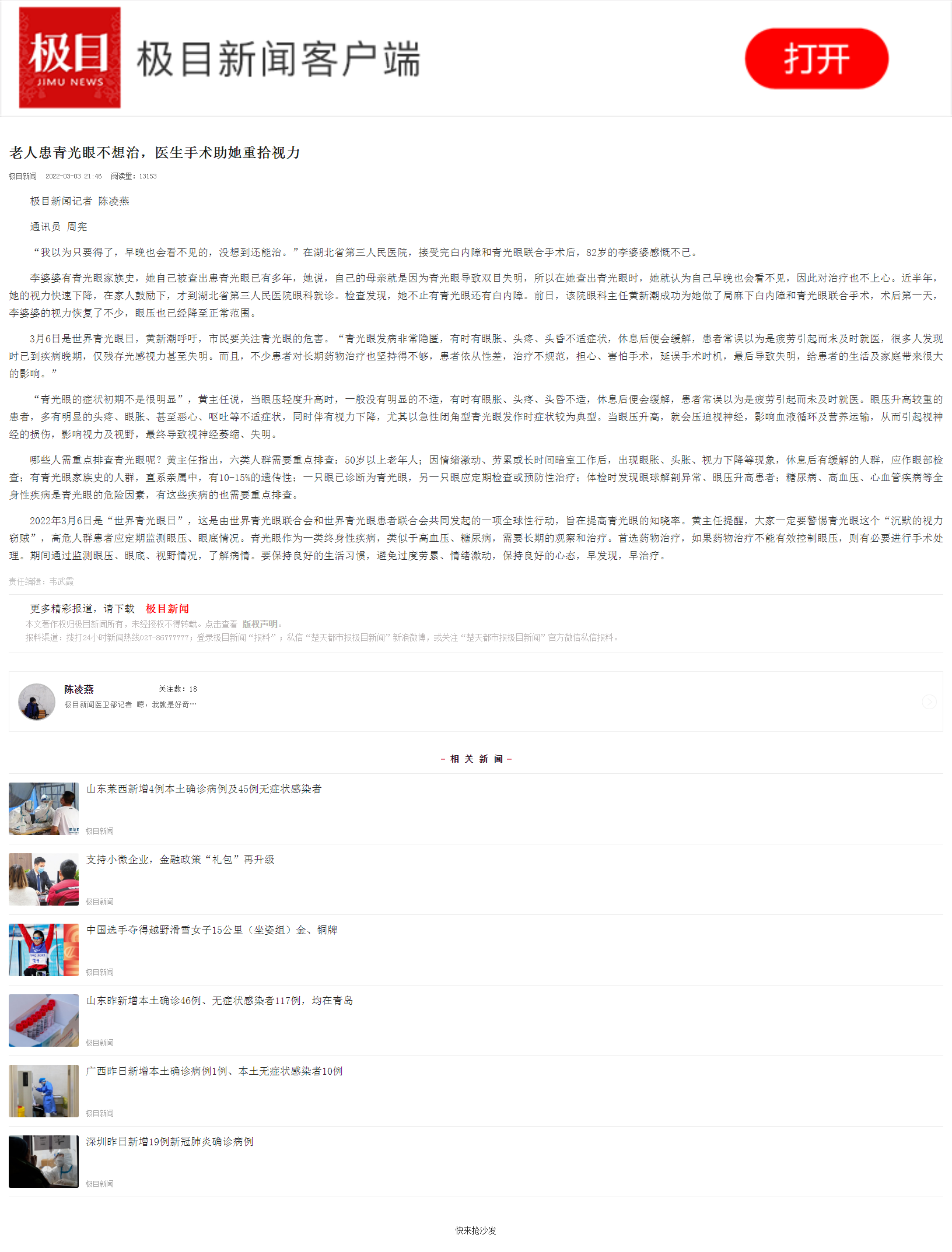 【楚天都市报】老人患青光眼不想治,医生手术助她重拾视力 发布时间:2022-03-07 来源:楚天都市报 上一篇:【楚天都市报】武汉夜晚的公交上演暖心一幕 女护士果断出手急救晕倒男子 下一篇:【楚天都市报】痒痒痒还听不清声音,他的耳朵里长毛了!医生呼吁:对耳朵好点,别乱抠别沾水