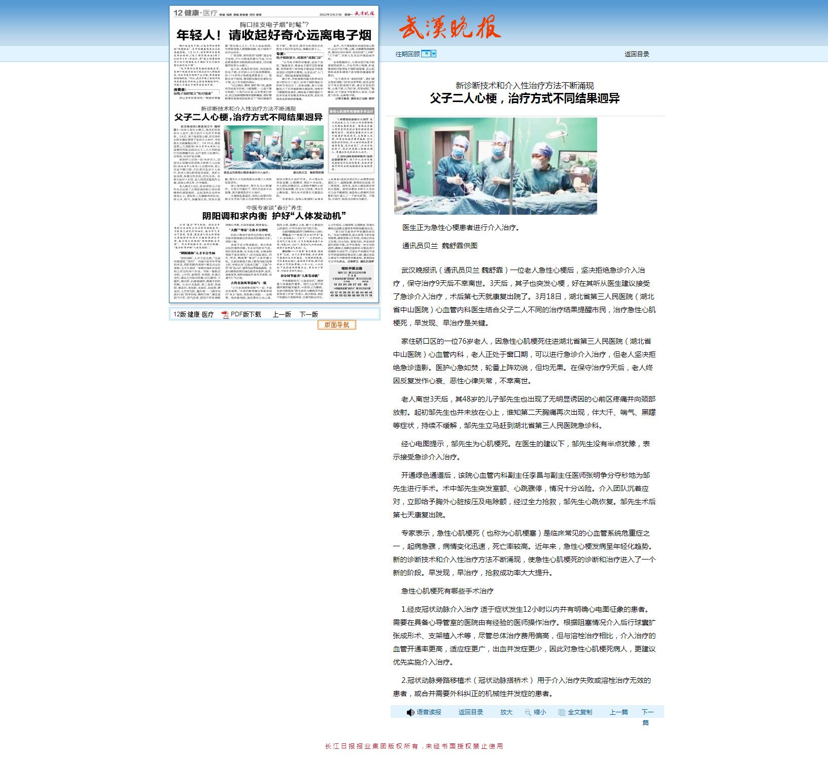 【武汉晚报】父子二人心梗,治疗方式不同结果迥异 发布时间:2022-03-21 来源:武汉晚报 上一篇:【楚天都市报】一根炙热的针 “热死”肝脏深处的肿瘤 下一篇:【楚天都市报】怎么谢谢你们呢?我有件喜欢的衣服穿给你们看