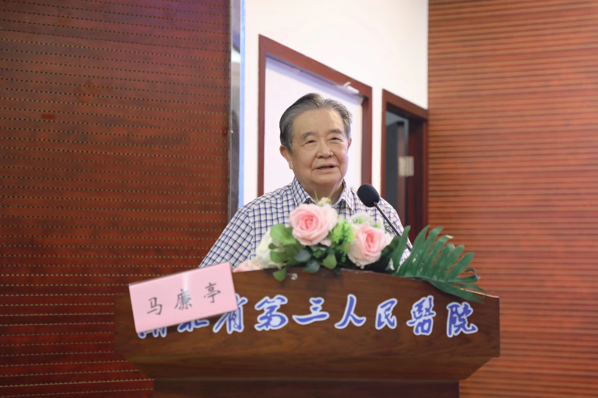 医院客座教授、中国人民解放军中部战区总医院马廉亭教授受邀致辞。马教授首先祝贺湖北中山脑血管病医院正式成立,他表示,脑血管疾病是我国居民第一位死亡原因,对人民群众健康危害极大,因此脑血管疾病的防治是打造健康中国的重要战略内容。湖北省第三人民医院率先在全省成立脑血管介入中心,医院神经内、外科都是全省临床重点专科,医疗技术达国内先进水平,两个学科人才济济、设备齐全、技术精良,能为患者提供更好更优质的医疗服务,他相信在院党委和领导的关心支持下,湖北中山脑血管病医院一定能取得更好的发展。最后马廉亭教授亲自赋诗一首,向“湖北中山脑血管病医院”的成立表示诚挚的祝贺: