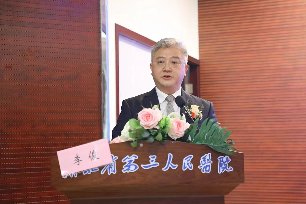 湖北省第三人民医院神经外科主任、脑血管病医院执行院长李俊作表态发言。他讲到,此次医院整合了两个院区六个神经内外科病区的力量,挂牌成立湖北中山脑血管病医院,将对医院的脑卒中防治工作及神经内外科的发展乃至对全院的发展产生深远的影响。他表示,湖北中山脑血管病医院将以党建为引领,把握正确的政治方向;团结同志,发挥其积极性;狠抓内涵建设,规范质控体系;高标准抓好学科建设,定标全国一流脑血管病专科医院;打破神经内外科分界,产生1+1>2的效果;唯才是举,搭建有良好创业氛围的平台,助力医院发展。