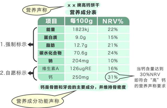 营养标签由三部分组成,即:营养成分表、营养声称、营养成分功能声称。
