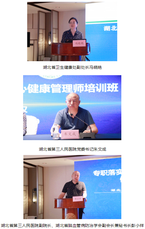 孟夏之月,万物并秀。2022年6月24日至30日,由湖北省脑卒中防治中心办公室、湖北省脑心健康管理师培训基地举办,湖北省第三人民医院 (湖北省中山医院)和湖北省脑血管病防治学会脑心健康管理专业委员会共同承办的2022年湖北省第一期脑心健康管理师培训班在武汉拉开帷幕 。湖北省卫生健康处副处长冯晓艳,湖北省第三人民医院党委书记朱文成,湖北省第三人民医院副院长、湖北省脑血管病防治学会副会长兼秘书长彭小祥莅临培训班开幕式。