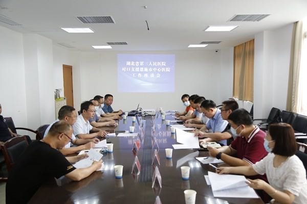 6月25日上午,魏伟一行到恩施市中心医院召开对口支援座谈会,恩施市卫健局副局长谭金生、市中心医院院长尹应雄及相关科室负责人参加了会议。