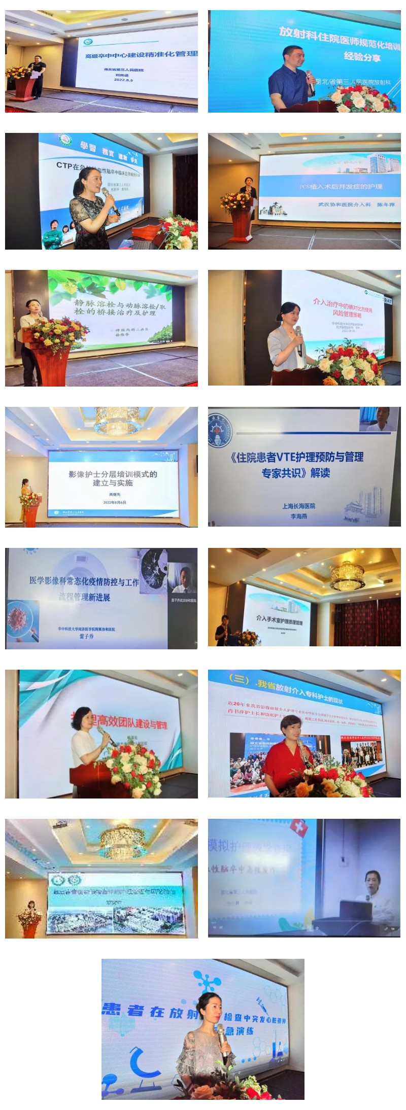 湖北省第三人民医院放射科副主任刘良进,副主任医师吴良龙、曾艳妮,副主任护师高继先、神经内科护士长徐伟华,护理部主任林双宏,张久霞护士长、李智英科护士长、副主任护师陈敏、余雁,武汉协和医院陈冬萍护士长、武汉同济医院李琴护士长、上海长海医院李海燕护士长(录播)、武汉协和医院雷子乔技师长(录播)等15位专家围绕高效的团队建设与管理新进展、诊治经验和专科疾病护理风险管理、放射影像科住院医生规范化培训和专科护士的分层培训等内容做了精彩的主题报告,特别对放射影像介入专科护士发展及展望进行了深层次的剖析。
