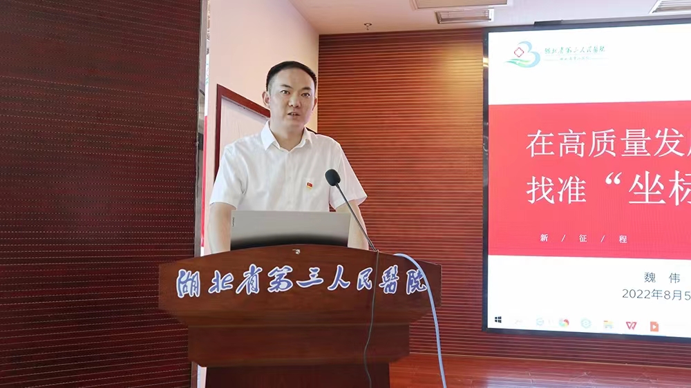 欢迎仪式结束后,魏院长为新员工讲授了岗前培训第一课《在高质量发展实践中找准“坐标系”》。魏院长从医院的发展历程、学科建设、人才培养和社会责任等方面进行全面系统的介绍,并结合十四五规划,对医院的发展目标、发展战略和工作措施进行解读,让新员工了解医院的过去和现在,对医院的未来充满期待。