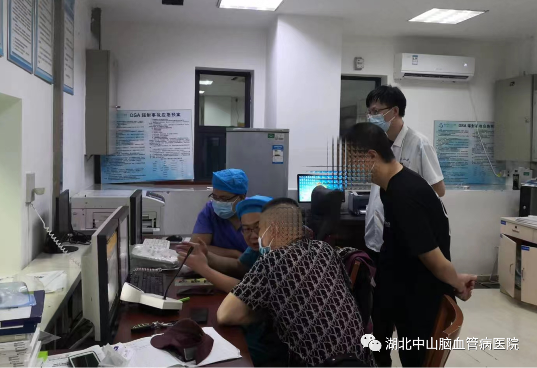 10分钟后,神经介入小组、麻醉小组就位,湖北中山脑血管病医院执行副院长万跃携神经介入医疗组朱碧峰组长和姜海伟组长为黄女士实施介入检查和治疗。造影结果提示,黄女士左侧颈内动脉起始部闭塞,又曾有颈动脉按摩病史,综合影像学表现和症状考虑是因动脉夹层导致此次卒中事件,遂为患者行颈动脉支架治疗。支架释放后患者左侧颈内动脉血流恢复通畅,颈动脉夹层消失。经过湖北中山脑血管病医院各个小组紧密配合,2小时后手术顺利结束,也成功挽救了一个家庭的幸福。