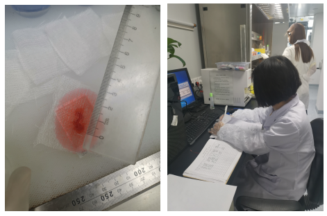 病理医师在取材时会测量及描述送检来的肿物大小、形状、质地、块数……技术员负责记录在申请单上。