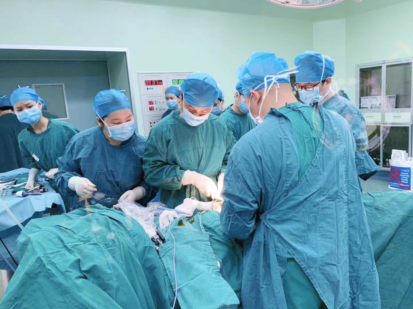 在医院经过详细检查后,确诊吴先生为肠套叠和肠梗阻,并通过检查发现,吴先生结肠脾曲处约有一6×5cm肿瘤,遂判断是该肿瘤导致的肠套叠,需要紧急手术。由于肿瘤本身血运极其丰富,表面布满滋养血管,稍有不慎就可能导致腹腔大出血,切除过程风险很高,经过周密的术前准备,普外科主任吴兴桂带领手术团队为患者行“结肠脾曲肿瘤切除术”,团队凭借高超的技艺和丰富的经验,手术刀游走于脏器、血管之间,经过数小时的努力,惹祸的肿瘤终于被摘除。