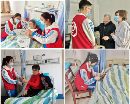 本次志愿者活动得到多个科室积极响应报名参加。另一组志愿者深入病区,为全科医学科(老年病科)、肾病内科(风湿免疫科)的老年病人读书读报、宣教防跌倒知识、按摩肩膀、生活护理、送水送饭、谈心聊天,纯真的笑容、亲切的话语温暖着住院老人的心。