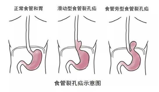 有食管裂孔滑动疝、食管旁疝、混合性疝。