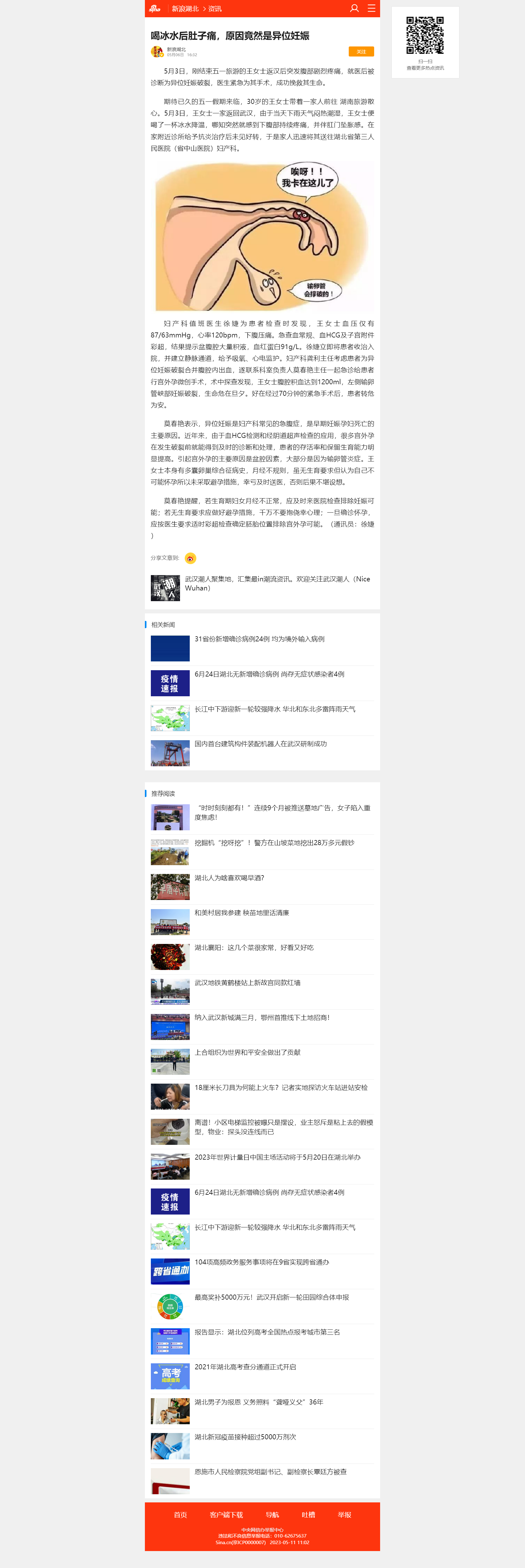 【新浪湖北】喝冰水后肚子痛,原因竟然是异位妊娠 发布时间:2023-05-11 来源:新浪湖北 上一篇:【荆楚网】微创介入堵大血管破口,多科协作显省三医实力 下一篇:【长江云】65岁大爷长期反酸,原来是胃“跑偏”了