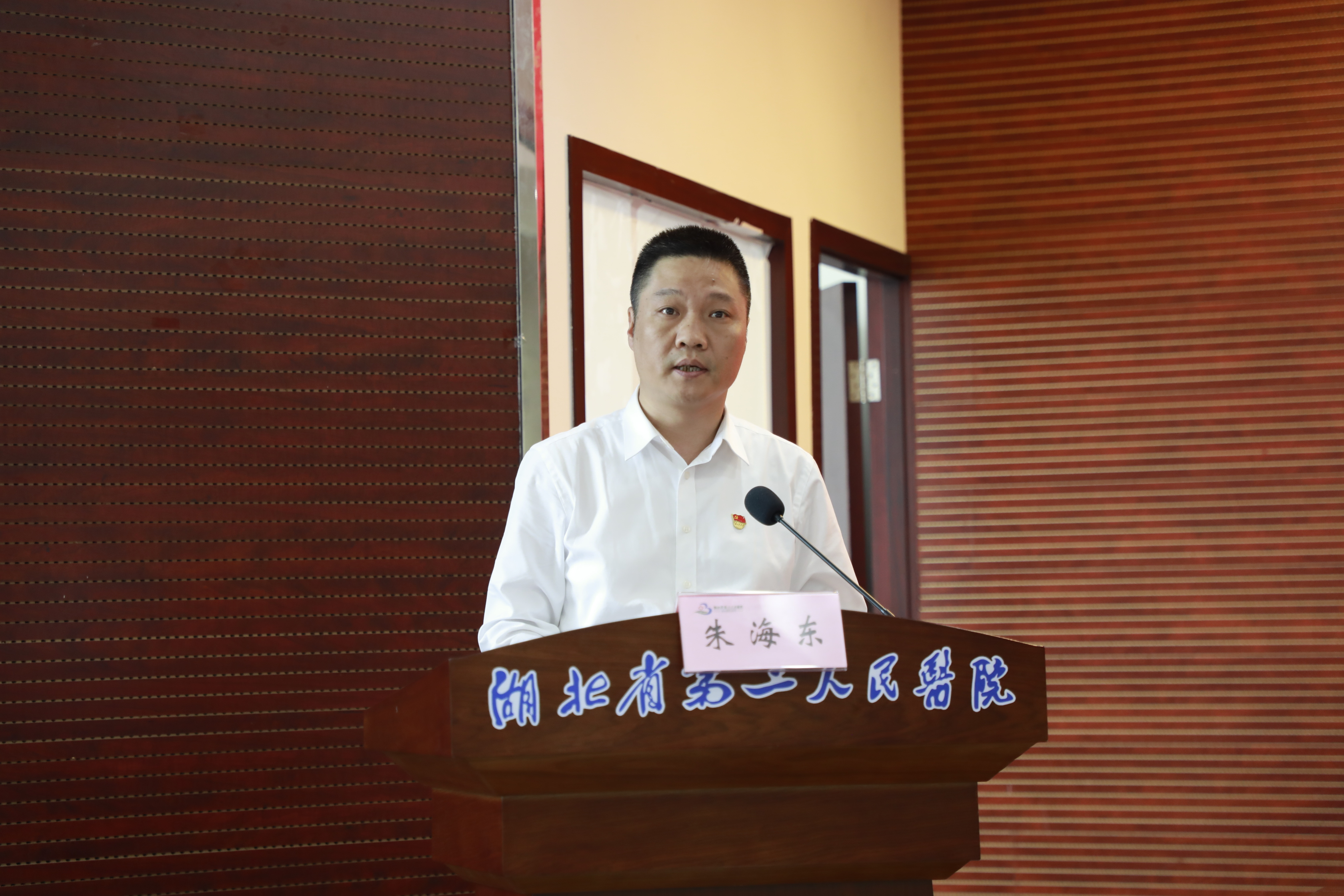 朱海东在讲话中要求,全院广大干部职工要深刻把握习近平新时代中国特色社会主义思想的核心要义、精神实质、实践要求和蕴含其中的马克思主义立场观点方法,增强“四个意识”、坚定“四个自信”、做到“两个维护”,不断提高政治判断力、政治领悟力和政治执行力。要坚持以学铸魂,筑牢信仰之基,做好学习深化、内化、转化工作,从思想上正本清源、固本培元。要坚持以学增智,补足精神之钙,坚持从习近平新时代中国特色社会主义思想的宝库中汲取智慧和力量,找到破解难题的思路和方法,一体推进理念更新、改革创新、实践出新,不断提升医疗服务能力。要坚持以学正风,永葆初心本色,切实增强自我净化、自我完善、自我革新、自我提高的能力,始终坚持不忘初心使命,树立正确的群众观、政绩观、权力观,始终保持共产党人的政治本色。要坚持以学促干,推动事业发展,找到学思用贯通、知信行统一的“金钥匙”,紧紧围绕医院目标任务,认真破难题、办实事,凝心聚力促发展。