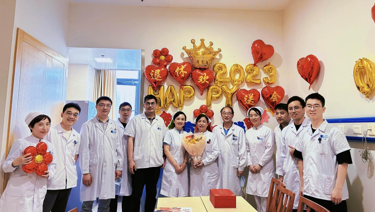 “余老师,祝贺您光荣退休。希望您退休后的生活更加多姿多彩、幸福美满,记得常回来看看我们……”湖北省第三人民医院(湖北省中山医院)肝胆胰外科的活动室里充满了欢声笑语,原来是在临床一线护理岗位工作了35年的肝胆胰外科主管护师余文华老师即将退休,肝胆胰外科护士长李宏牵头为其举办退休欢送会,科室戚鹏主任、罗金波主任以及护理部林双宏主任、大外科雷丹科护士长也来到现场为余文华老师送上鲜花和祝福。