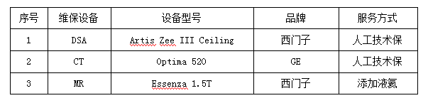 4.采购需求:CT、DSA、MR设备维保服务,详见附表