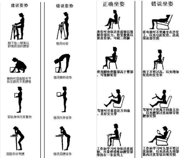 1、站立练习法:即站立时双脚分开与肩同宽,双手叉于腰部,挺胸抬头凸腹,使腰背肌收缩。