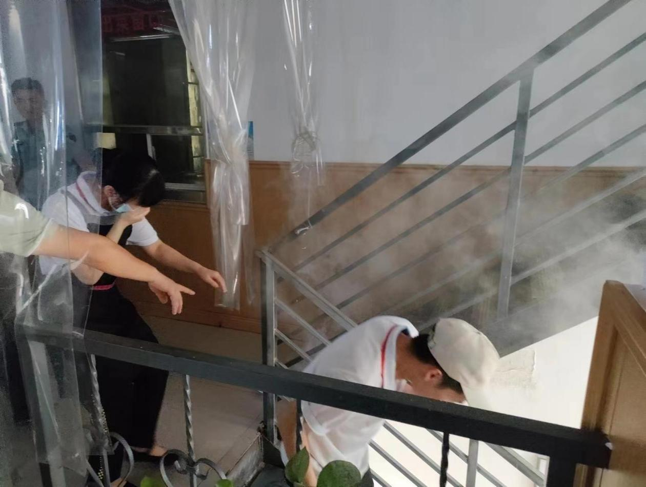 理论培训后,进入应急疏散演练环节,现场模拟起火,食堂工作人员发现火情后,第一时间按下手动报警装置,拨打当班领导电话,同时使用最近的二氧化碳灭火器进行灭火。后勤保卫部组织启动食堂火灾应急预案流程,各演练小组在听到疏散指令后,迅速按照流程有序进行疏散,全体人员各司其职,达到了预期的演练效果。