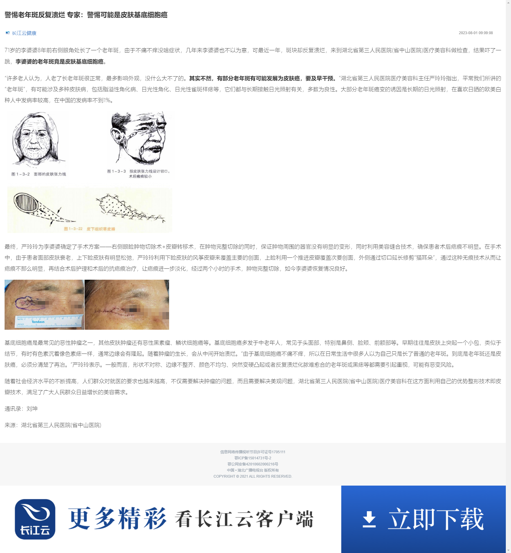 警惕老年斑反复溃烂 专家:警惕可能是皮肤基底细胞癌 发布时间:2023-10-17 来源:医学美容科 上一篇:癌肿破裂危在旦夕 介入除“雷”转危为安——消化介入TACE,晚期肝癌患者的希望 下一篇:旅游途中突发怪病 万里寻医重获健康