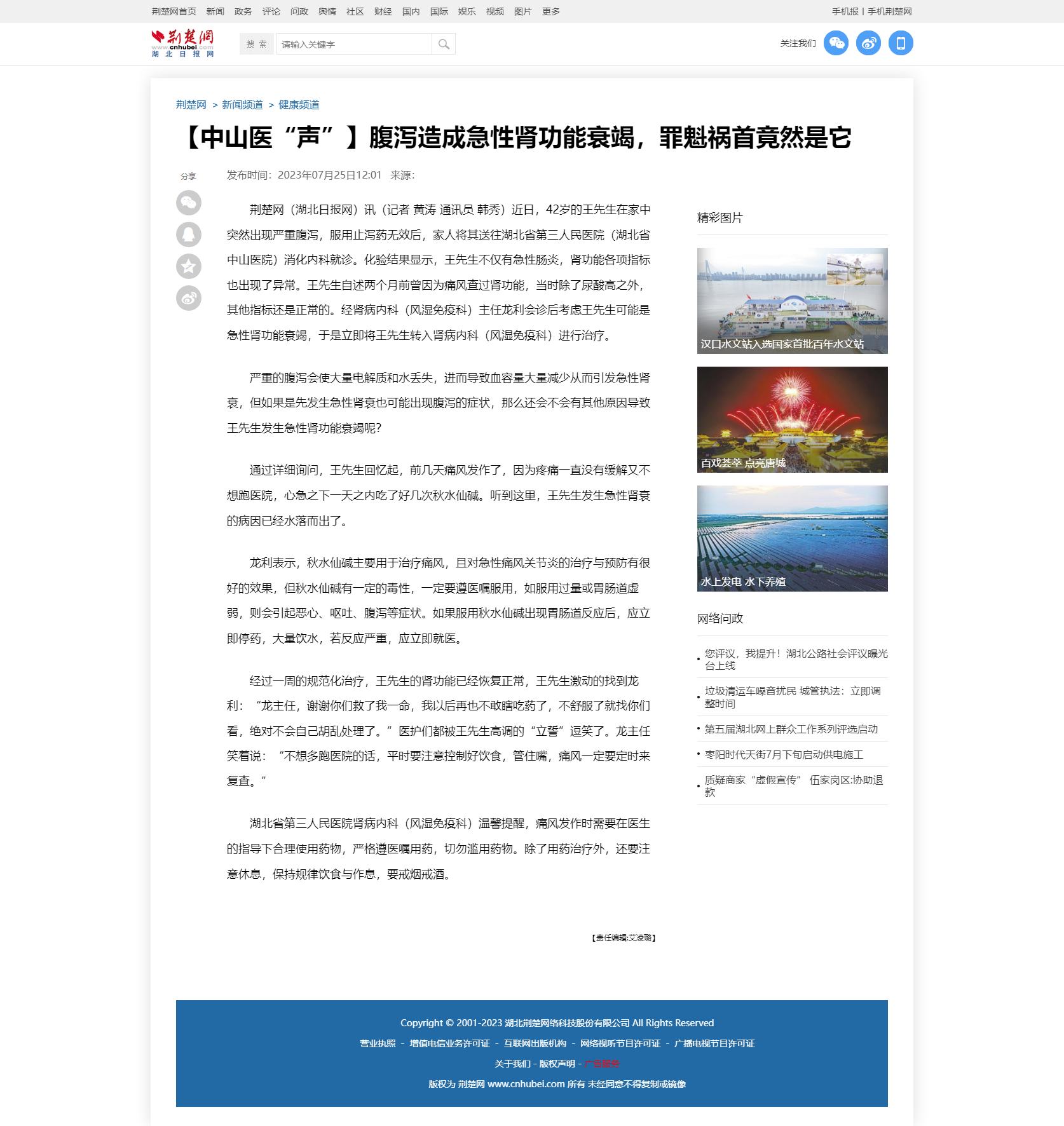 【中山医“声”】腹泻造成急性肾功能衰竭,罪魁祸首竟然是它 发布时间:2023-10-17 来源:肾病内科(风湿免疫科) 上一篇:腿上爬满“小蚯蚓”,微创射频消融来帮忙 下一篇:8旬老人不慎吸入肉块,医生支气管镜下紧急取出