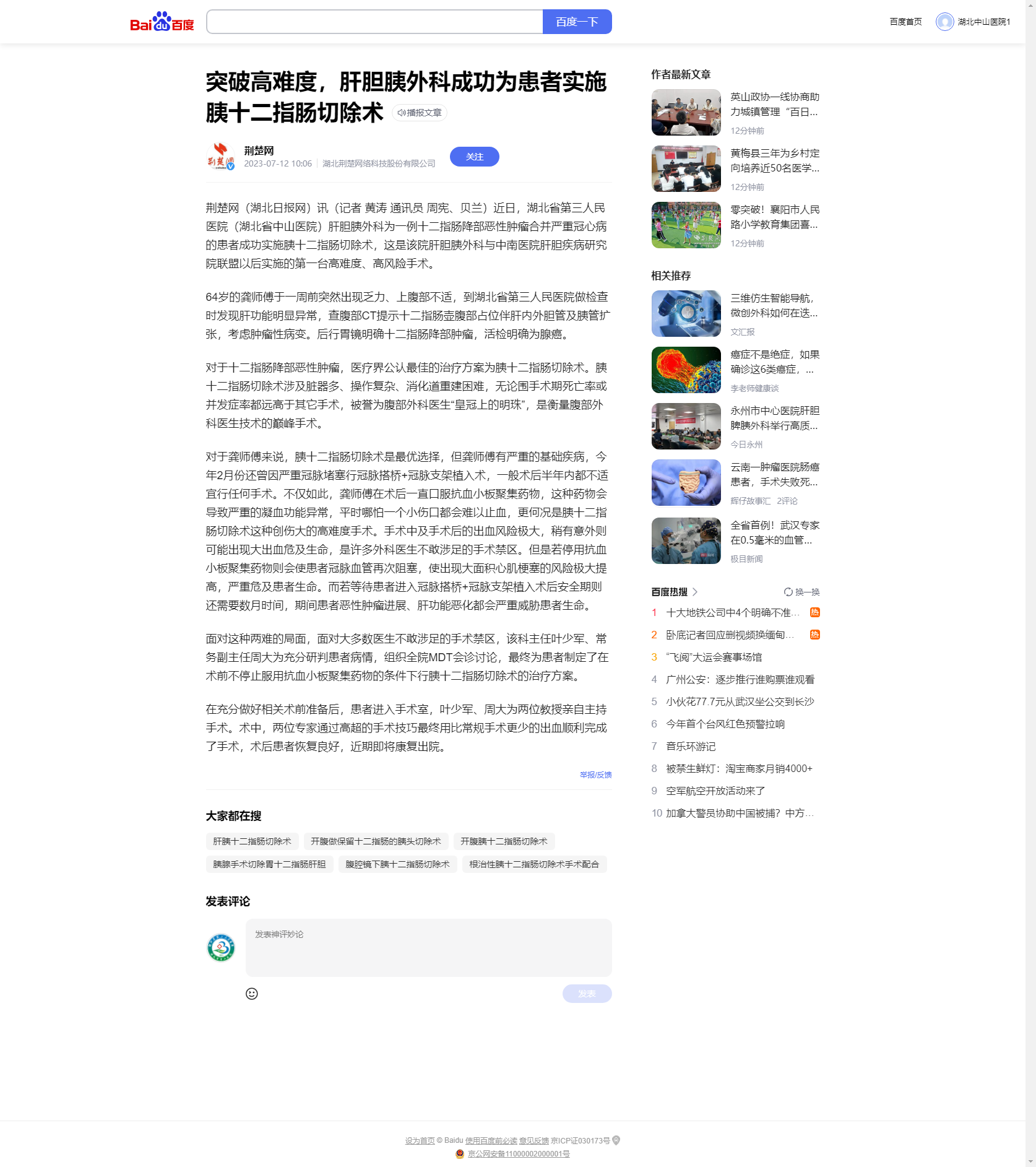 突破高难度,肝胆胰外科成功为患者实施胰十二指肠切除术 发布时间:2023-10-17 来源:肝胆胰外科 上一篇:湖北省第三人民医院成功运用三维重建实施微创肺段切除术 下一篇:小儿腺样体肥大别着急 中医调理有妙法