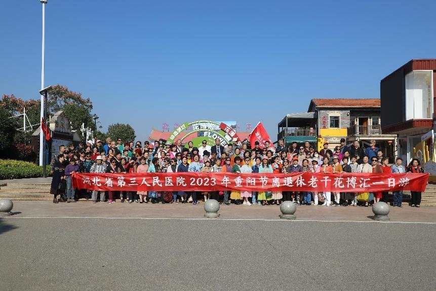 为倡导尊老为德,敬老为善,助老为乐,爱老为美的良好风尚,促进两院区深度融合,为医院高质量发展积聚正能量,形成两院区共融促发展的良好氛围,2023年10月23日重阳佳节当天,在医院领导的关心和大力支持下,湖北省第三人民医院(湖北省中山医院)工会组织硚口、阳逻两个院区离退休干部职工近200人,在蔡甸区花博汇开展2023年重阳节一日游活动。