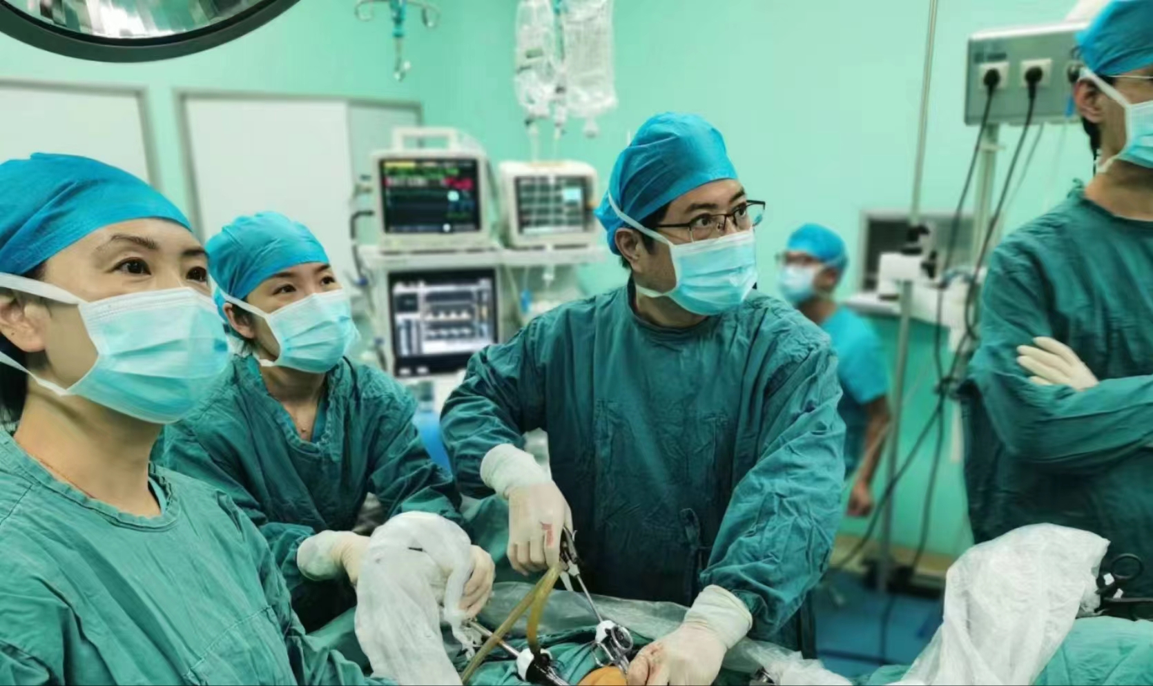 经过科内谨慎讨论分析,妇产科主任王中显决定为患者实施经腹小切口放出囊液+腹腔镜下子宫及双附件切除术,术中快速病检示提示为良性肿瘤。手术过程顺利,经过医护们的精心护理,张大妈很快恢复健康,目前已经康复出院。