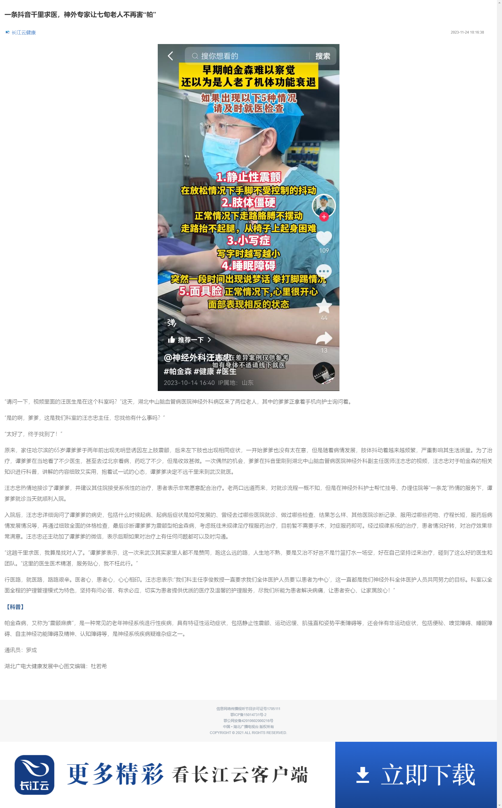 一条抖音千里求医,神外专家让七旬老人不再害“帕”