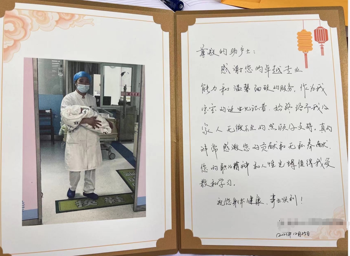 2023年圣诞节这天,湖北省第三人民医院(湖北省中山医院)妇产科助产士黄书云收到了这样一份特殊的圣诞节礼物,是一名宝妈李女士(化名)送来的感谢信,上面写到:“感谢您卓越的专业能力和温馨细致的服务,作为我宝宝诞生的见证者,始终给予我及家人无微不至的照顾和支持。”