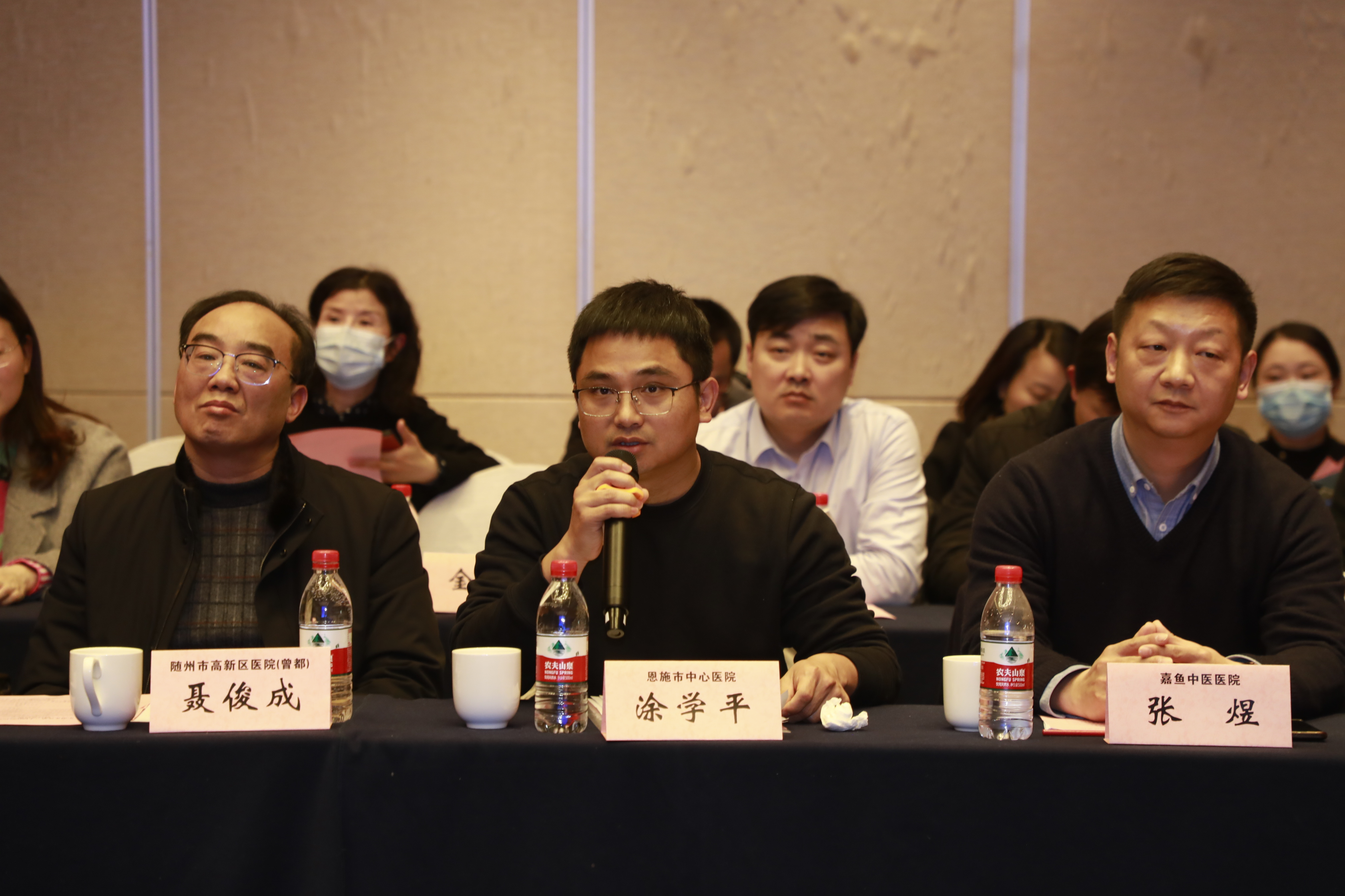 恩施市中心医院副院长涂学平、嘉鱼县中医医院院长张煜、随州市高新区医院书记聂俊成作为医联体单位代表分别发言。涂学平副院长表示,多年来省第三人民医院历届领导高度重视对口支援工作,提供了专家驻点帮扶、专科建设等多项优质服务,对恩施市中心医院的跨越式发展支撑起了一片勃然奋发的精神高地。张煜院长对省第三人民医院托管嘉鱼县中医医院四年的业务情况、帮扶建设情况进行了汇报,希望在省第三人民医院的带领帮扶下,嘉鱼县中医医院能继续“跑步前进”。聂俊成书记对医联体建设工作的帮扶表示感谢,对今后双方合作前景充满期待。
