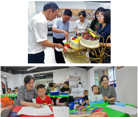 结业典礼最后,院领导朱海东、魏伟为托管班的小朋友们颁发了奖状及礼物,并为孩子们切分蛋糕。小朋友们在写有“遇见可爱的你”的巨幅画布上粘贴自己的画作,为暑期的学习生活画上了圆满的句号。(文:周宇光)