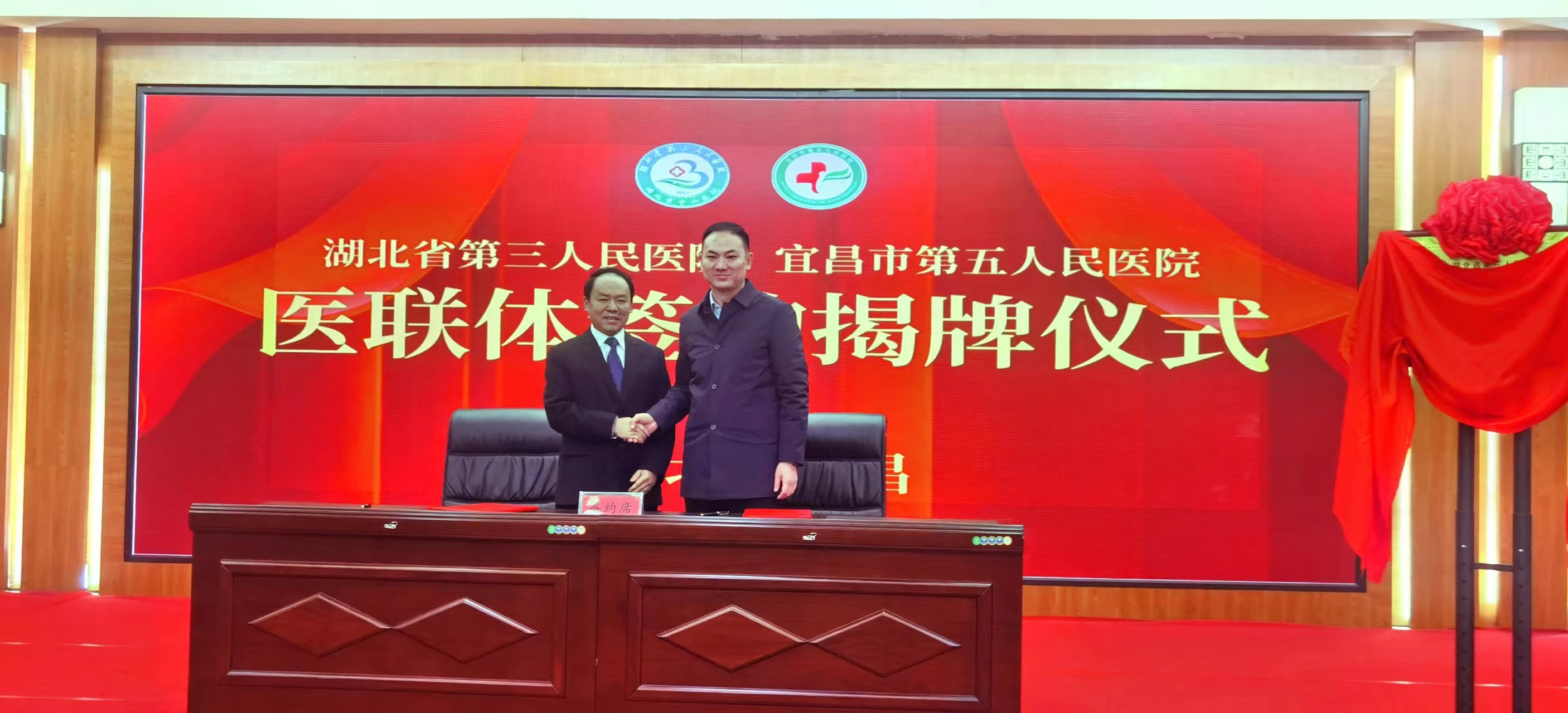 在宜昌市第五人民医院,猇亭区区委政法委书记陈忠军、副区长向光富、区卫健局局长张有政及宜昌市第五人民医院领导和部分干部职工共同参加两院签约揭牌仪式。签约仪式上,陈忠军书记表示,两家医院能结为紧密型医联体将为宜昌第五人民医院打造优质综合性医院、猇亭区域医疗中心建立提供强有力的后盾,更好更精的为猇亭区人民群众提供优质的医疗服务。仪式结束后,省三医心脑专家为该院的危重患者进行了查房和病例讨论指导。