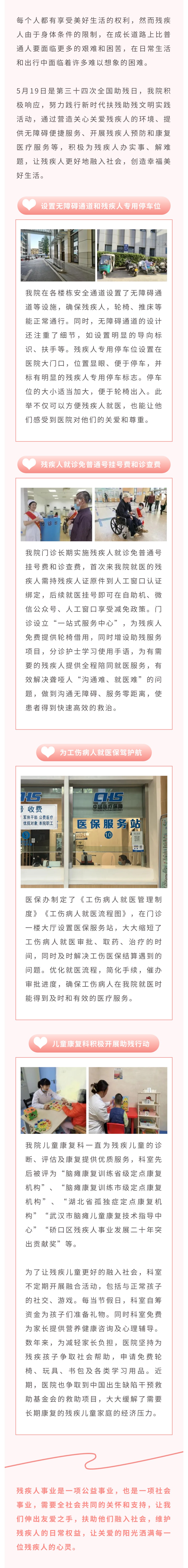 推进扶残助残文明实践 营造良好社会文明风尚——全国助残日,我们在行动 发布时间:2024-05-20 来源:医务部门诊办公室 上一篇:【喜报】湖北省第三人民医院脑卒中防治团队荣获“湖北省工人先锋号” 下一篇:【中山清风】清风拂医心 墨香润廉洁——省三医参观省直机关第十届“清风颂”廉政书画作品展