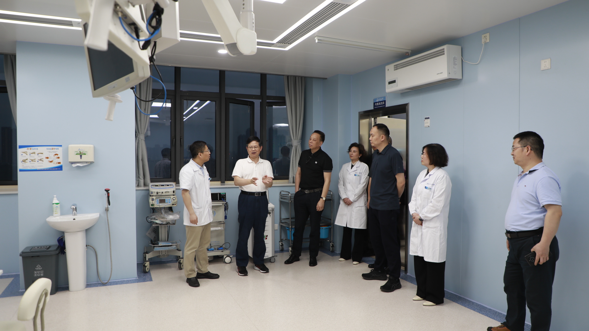 呼吸与危重症医学科主任高宝安向各位评审专家介绍了医院基本情况、科室建设情况及未来发展方向。随后,评审专家一行参观湖北中山呼吸疾病诊疗中心相关诊疗区域并指导工作。