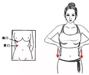 四门穴是肝经的最后两个穴位——章门和期门,左右各两个, 都在乳下肋部, 用双手掌跟推揉两肋至发热,就可以打通肝胆经。
