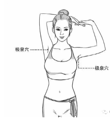 夏天是心阳最旺的时候,加上高温出汗量多,“汗为心之液”,心气受到扰动后就出现身体不适,心悸是这段时间工作人群易发的一种情况。极泉穴位于腋窝顶点,属心经。对于各种情况的心悸均有缓解。按摩时,用一只手的中指指尖按压另一侧腋窝正中的凹陷处,有特别酸痛的感觉;再用同样的方法按压另一侧的穴位;先左后右,每天早晚各按1次,每次揉1~3分钟。
