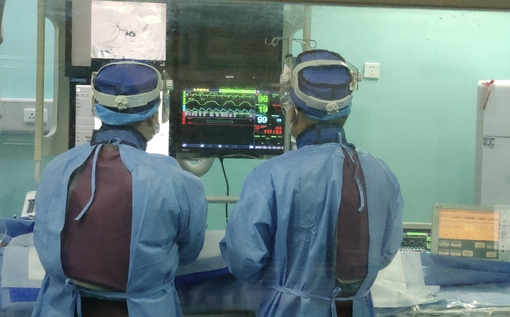 此时的电话无疑提示患者病情已经极度恶化,需要紧急介入治疗了。情况危急,吴良龙来不及多想,立即向科主任毕俊英汇报情况,毕俊英立即启动科内急诊介入小组,务必要在最短的时间内集结到位开展手术,抢救病人生命。